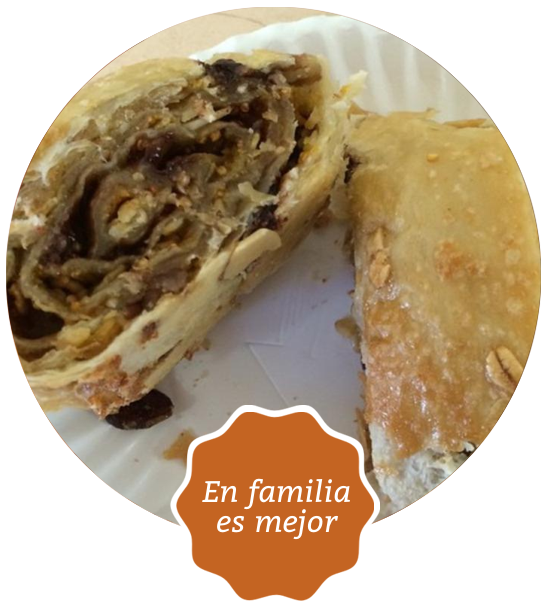 Ingredientes: Rollo de hojaldre+ Nuez + almendra +Arándanos + Avena + Amaranto + Choco-Chips y Moscabado